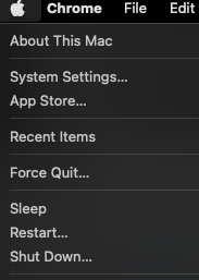 • Restart Your MacBook: Click the Apple logo in the top-left corner of your screen, then select Restart. (See screenshot)