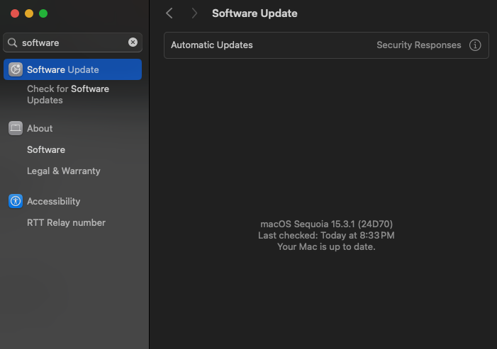 Here is a screenshot below of the Software update screen on my MacBook Pro M3 Max.